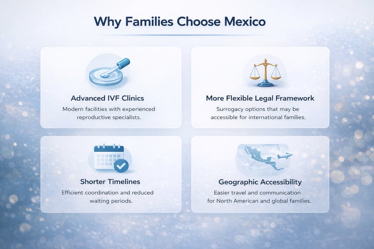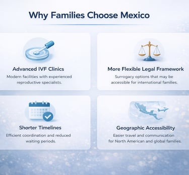 Many families choose Mexico for its high-quality medical care, experienced fertility specialists, and more accessible treatment timelines.